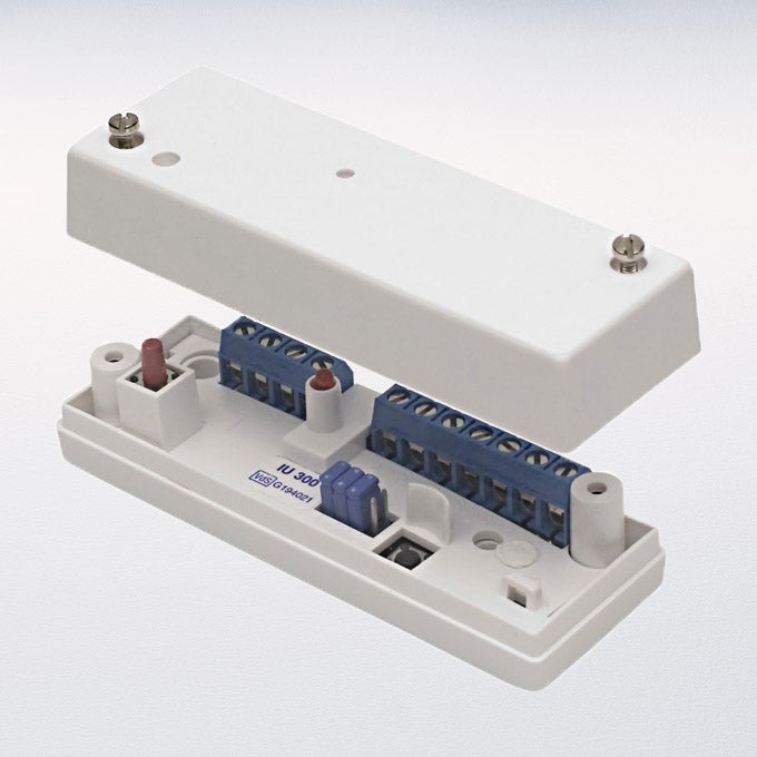 IU 300 är en analysator- och reläenhet till GD 335 och GD 375 serien glaskrossdetektorer för anslutning till en centralapparat. Upp till 20 detektorer kan anslutas till en analysatorenhet.
